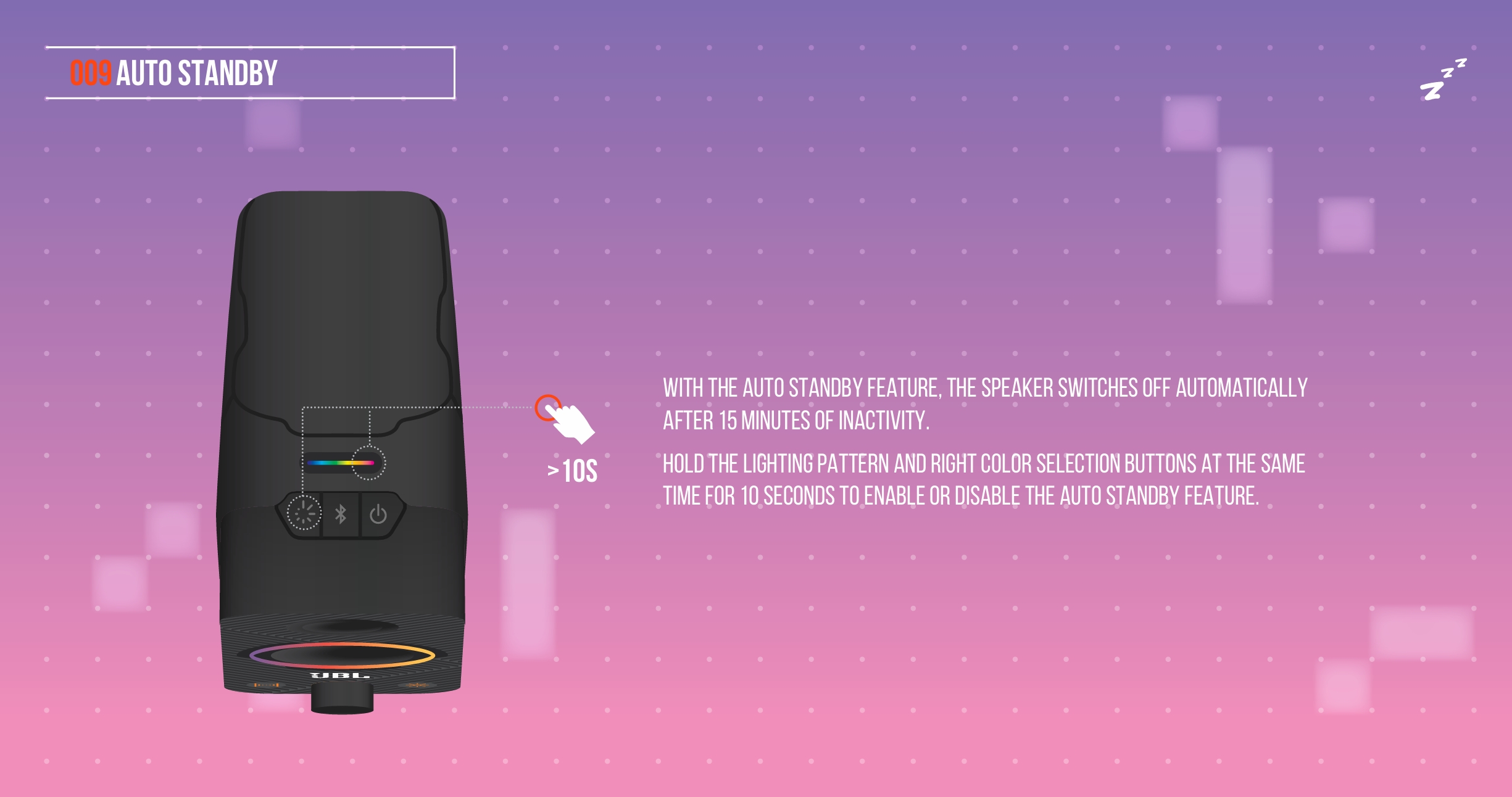 8.(위 과정 중 스피커가 먹통이 되는 증상이 있다면, 컬러 이펙트(파란색 부분) + 블루투스 버튼을 동시에 눌러 스피커 초기화)