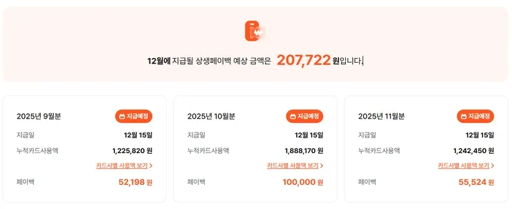 - 페이백 예상 금액 및 2025년 소비실적은 익일 09시부터 상생페이백 누리집에서 확인 가능합니다.