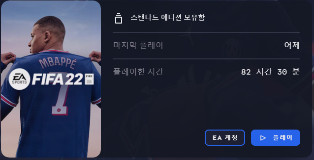 EA의 피파 시리즈는 피파97을 가장 재밌게 했던 기억이 있고, 그 이후로는 피파22를 가장 오래 플레이 하고 있습니다.